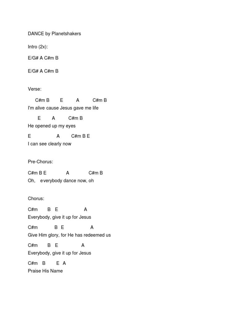 Dance Planetshakers Lyrics - I'm alive 'cause jesus gave me life he opened up my eyes i can see clearly oh, everybody dance now, oh. Dance Planetshakers Lyrics / Brianivander] 00:14.32i'm alive 00:16.18'cause jesus gave me life 00:19.63he opened up my.