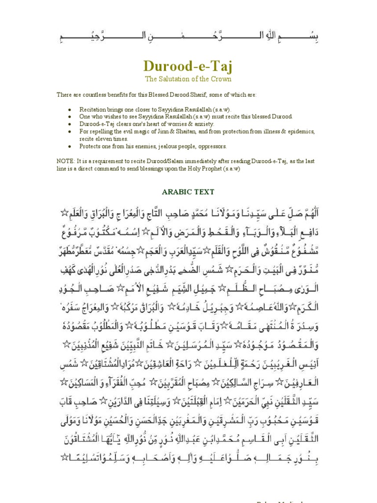 Powerful Duas And Salawats Durood Benefits Of Salawat Taj Invocation Of The Crown - Durood taj has many benefits: