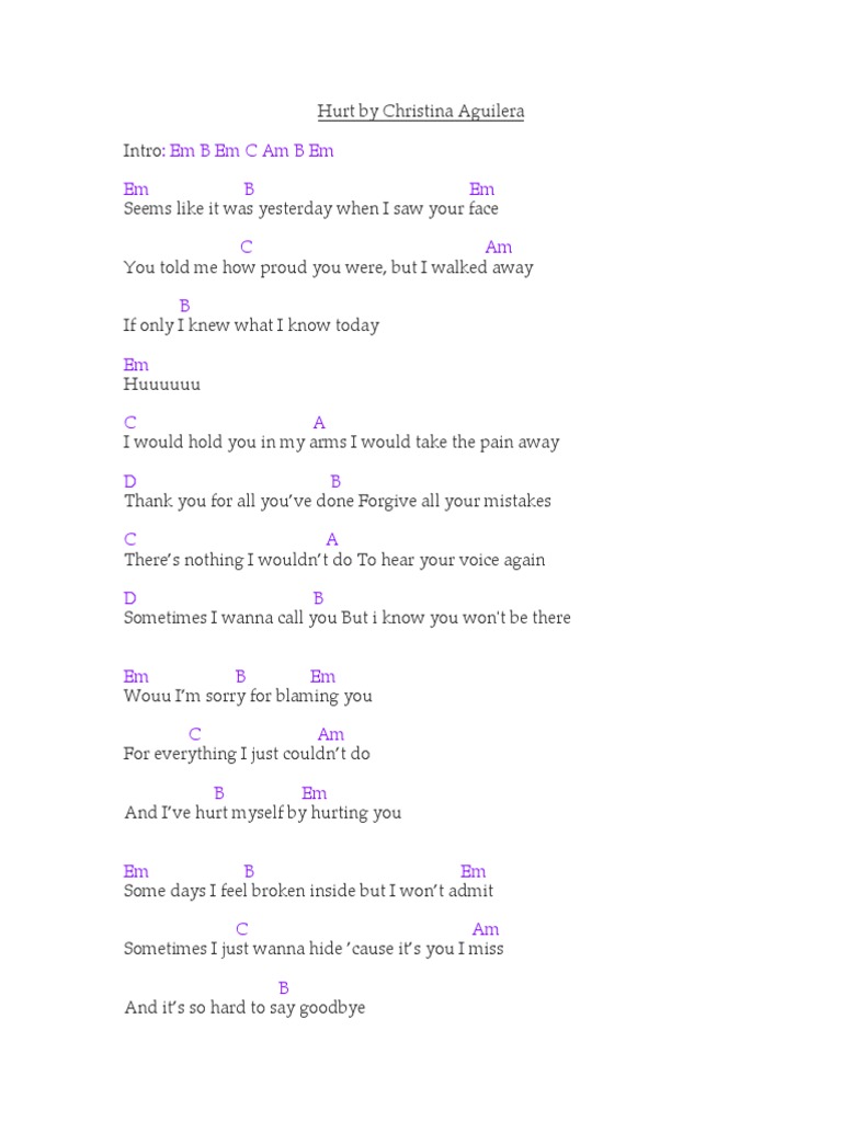 Christina Aguilera Hurt Chords Guitar Christina Aguilera Movies Songs - Commercially, the song attained moderate success in the united.