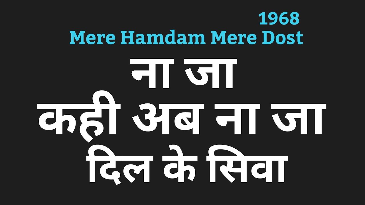 Na Ja Kahin Ab Na Ja By Javed Ali Hemantkumar Musical Group Hindi Movie Mere Hamdam Mere Dost 1968 By Hemantkumar Mahale - Na jaa kahin ab na jaa dil ke siwaa na jaa kahin ab na jaa dil ke siwaa hai yahi dil koochaa teraa ae mere hamdam mere dost naa jaa from evergreen, track released april 1, 2018 na ja kahin ab na ja music:
